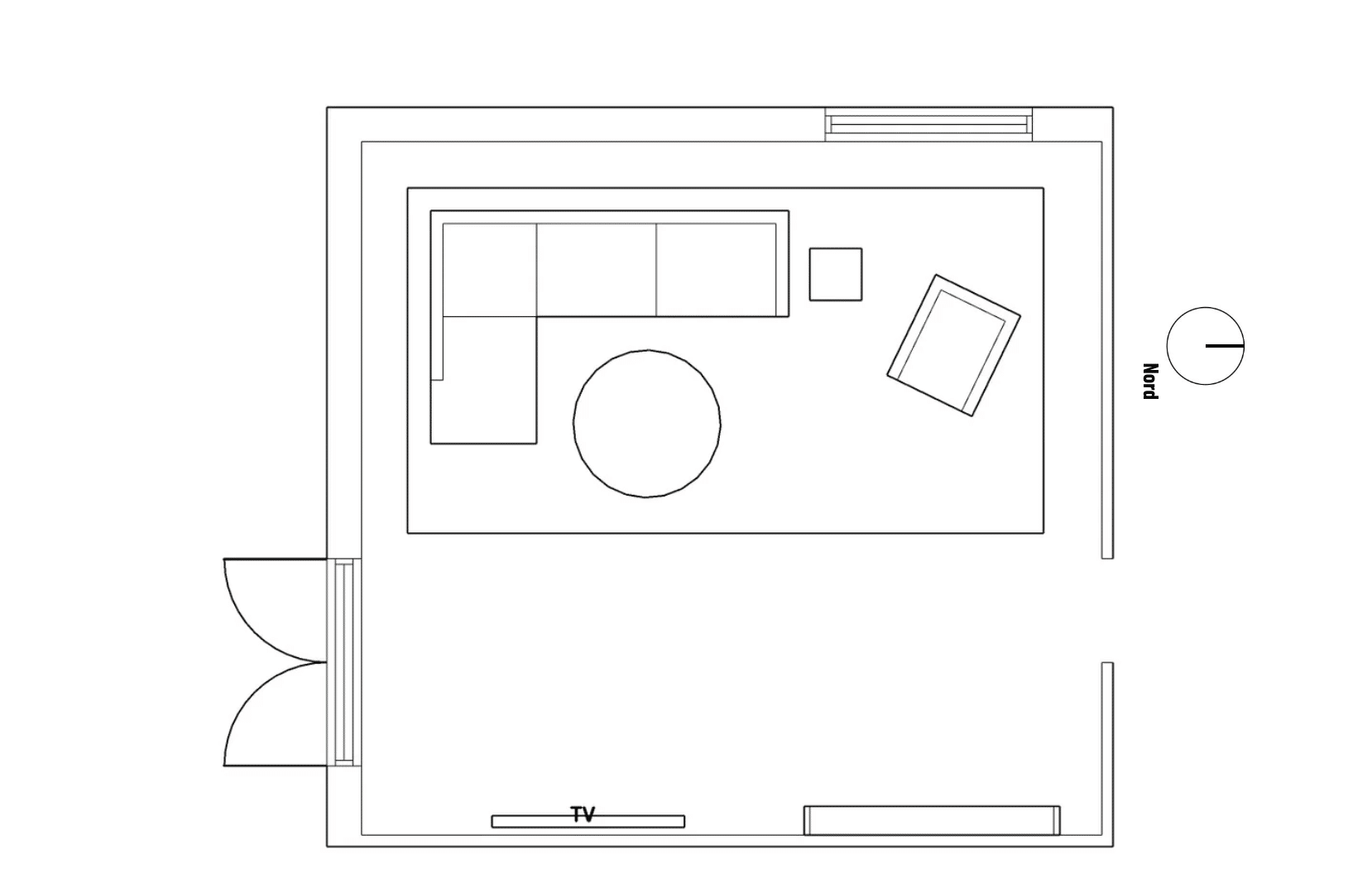 2D møbleringsplan af stue